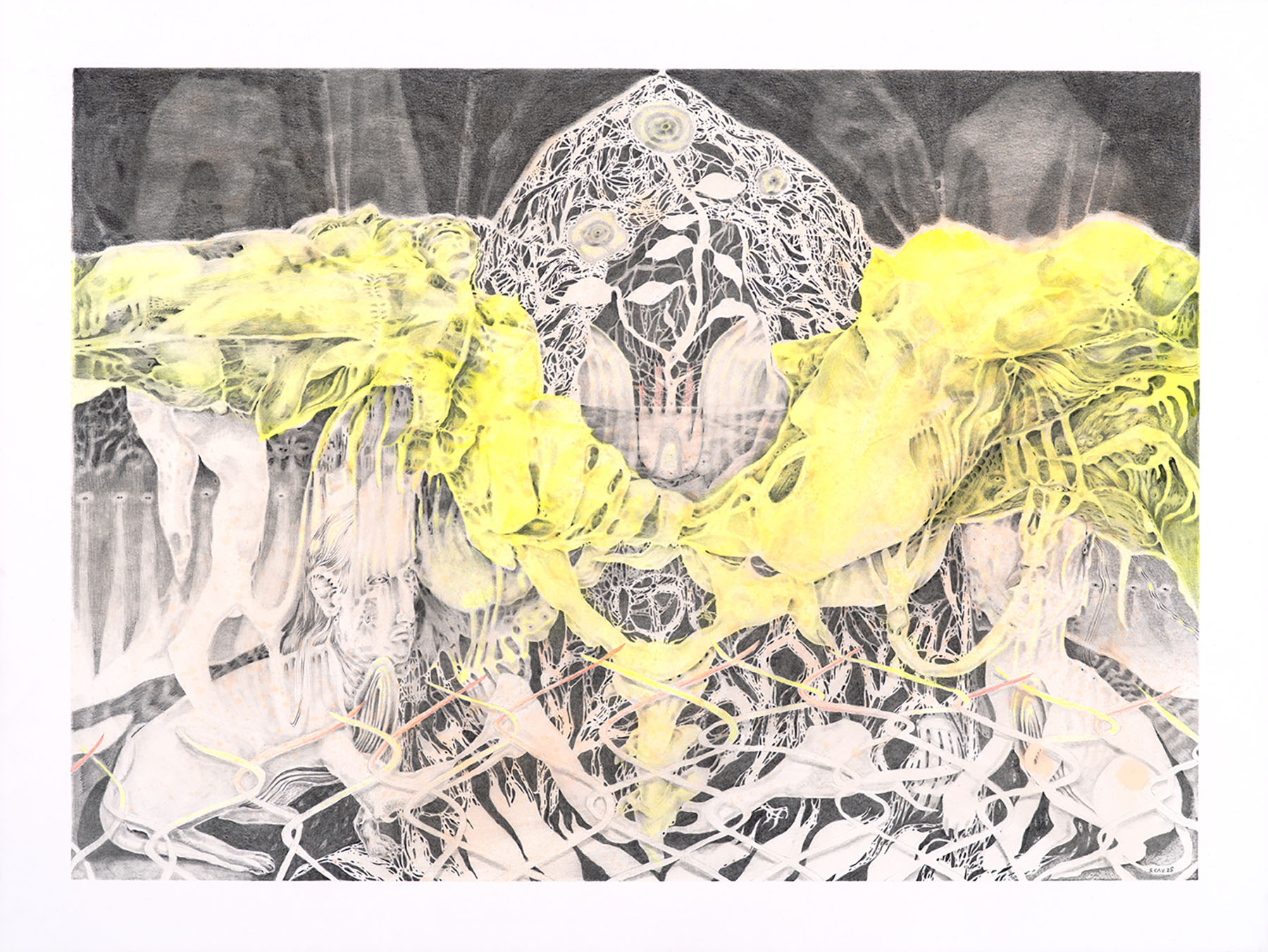 Acrylic ink, graphite, colored pencil on paper