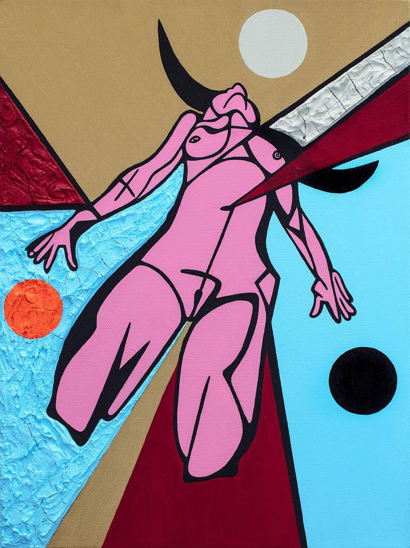 Acrylic, spray paint, crackle paste