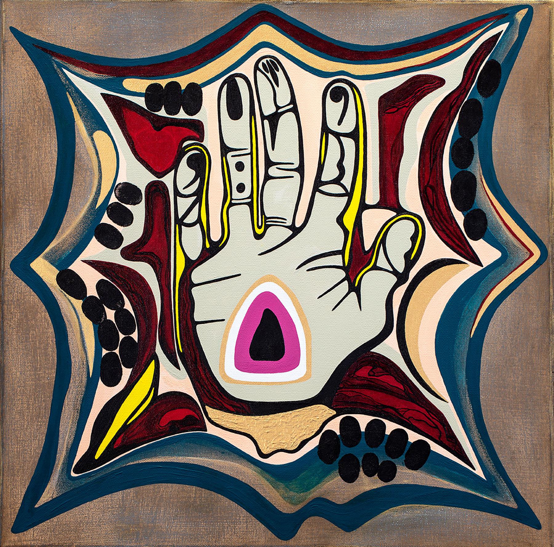 Acrylic, spray paint, crackle paste